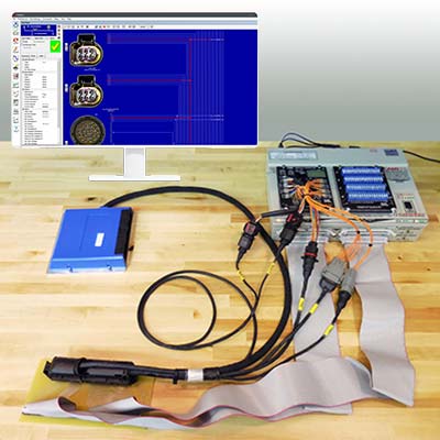 ECU conversion kit by EMH Motorsports being fault-checked with an expanded CableEye M3-series tester fitted with a customized CB8.