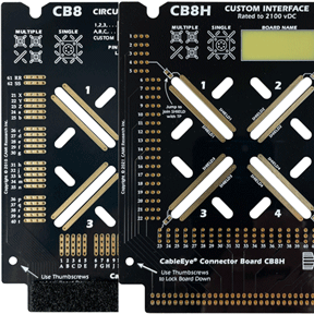 As long as the connectors under test are suitably voltage-rated, the board configurations you see below may be realized with either the CB8 or CB8H.