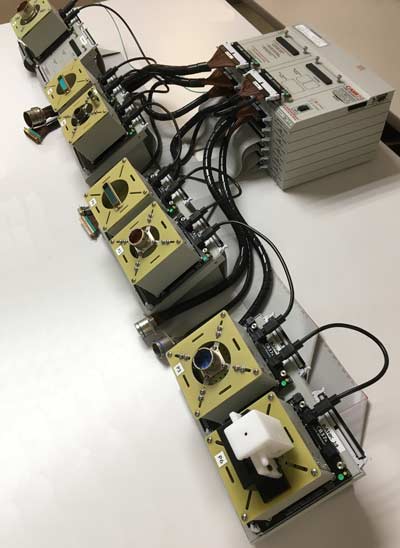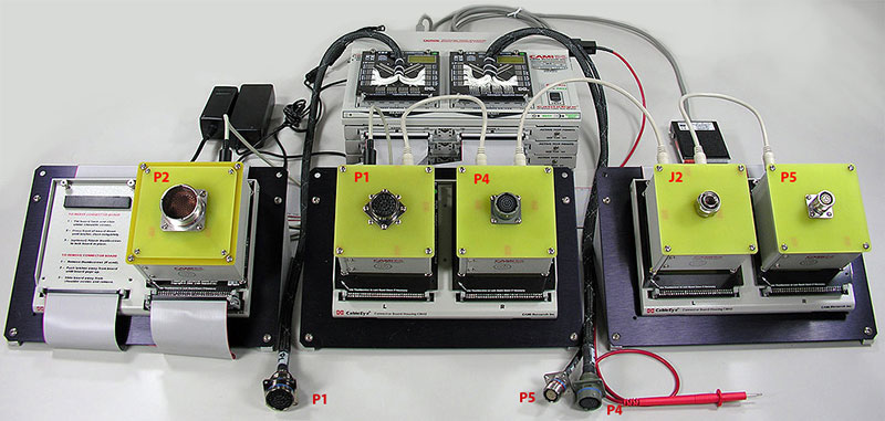 1 - The cable shown here has a connector on the left side attached to an electrical interface we built for it, and bare pins on the right side. These pins are to be inserted into a build connector mounted on the Light Director™ board you see on the right.