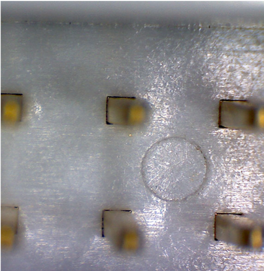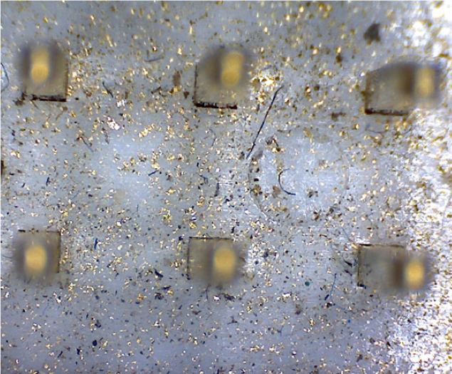 Wire clippings, metal punch-outs, metal dust (Fig. 1.3), or spilled beverages may cause unintentional connections between test points, or work their way onto the circuit board and introduce shorts. Coffee and soda are highly conductive when liquid and leave conductive residue when dry, creating a difficult repair problem, especially for testers measuring isolation resistance above one Megohm.