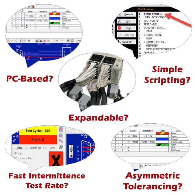 For diagnostic and Pass/Fail Testing - Find, display, log, & document continuity (opens, shorts, miswires, intermittent connections).