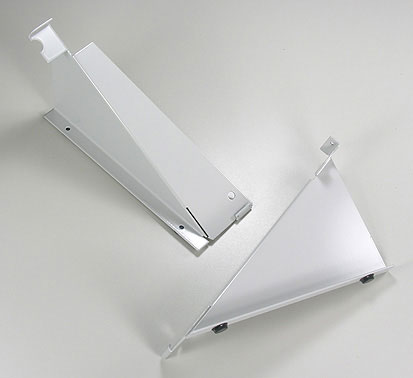 Mount these two sturdy aluminum brackets to the base of an M-series tester to tilt the unit forward at a 30° angle. Rubber feet protect the table top, and holes in the bottom flange of these brackets permit them to be bolted to the work table if desired. May be used with expansion modules attached. Recommended for high-volume production stations or when using our Light Director™ connector assembly system (Items 767A, 768A). Will not work with M2U-Basic testers (Item 810) having serial numbers below 004350. Includes two brackets, screws, and installation instructions. QuickMount™ Housing Tilt Stands are also available (Item 712A).