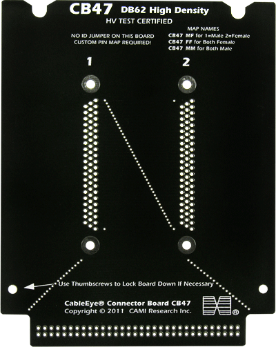 Two connector positions provided on this board will each accept either male or female DB62HD connectors. Specify your gender preference when ordering and the connectors will be mounted as needed. Set of two boards.