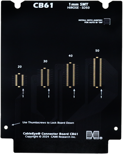 1 SOLDER SERVICE: We mount connectors that you supply. Test is only possible, and included, if you are able to supply us with test cables. Test cables will be returned. When ordering connectors, choose post length suitable for 0.093” thick PCB - the thickness of all CAMI CB boards. Contact us for pricing.