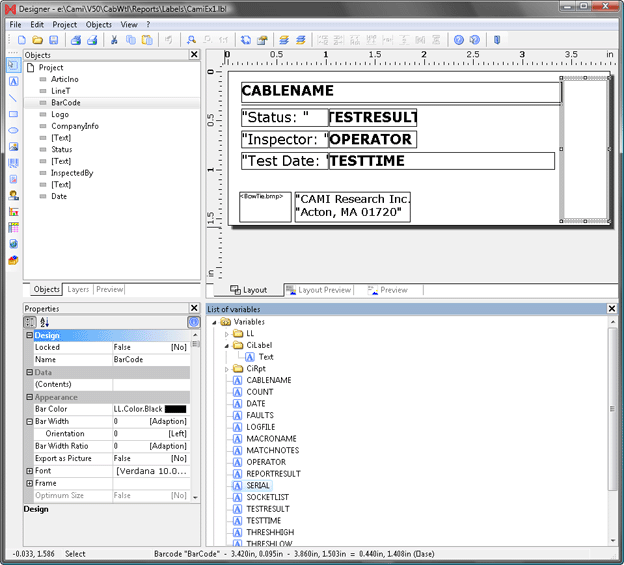 The first image shows and example label, and the second image the label layout screen. Some prior knowledge of reporting and forms packages is helpful but not required.