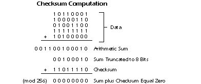 Another approach to error detection involves the computation of a checksum. In this case, the packets that constitute a message are added arithmetically. A checksum number is appended to the packet sequence so that the sum of data plus checksum is zero. When received, the packet sequence may be added, along with the checksum, by a local microprocessor. If the sum is nonzero, an error has occurred. As long as the sum is zero, it is highly unlikely (but not impossible) that any data has been corrupted during transmission.