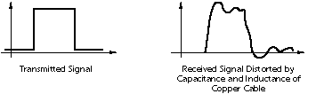 A second problem involves the distortion of electrical signals as they pass through metallic conductors. Signals that start at the source as clean, rectangular pulses may be received as rounded pulses with ringing at the rising and falling edges: